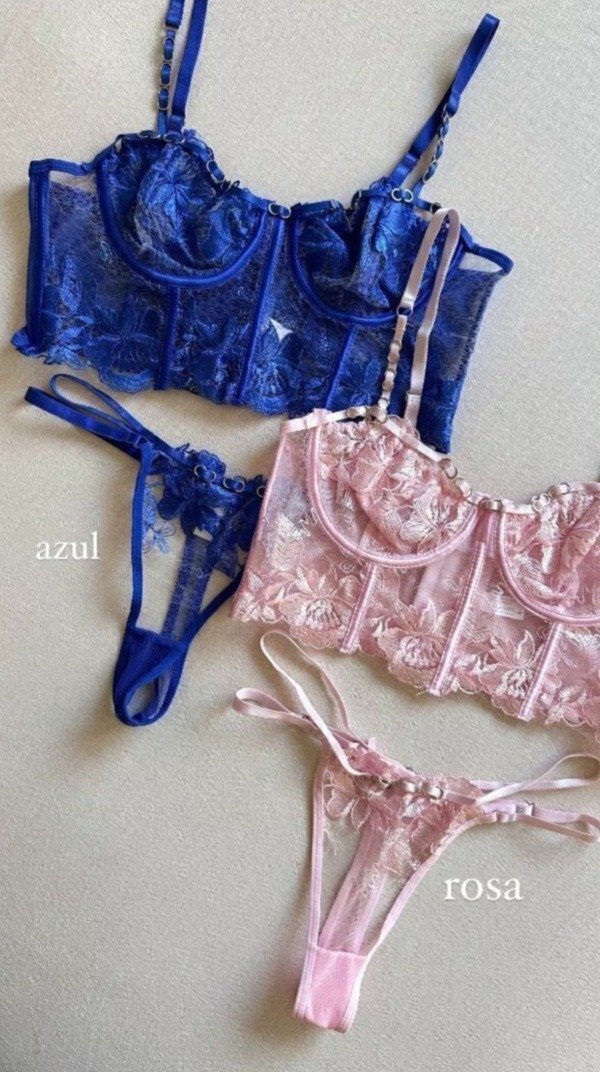 Conjunto corset bordado bi-color con bombacha colaless doble tira
