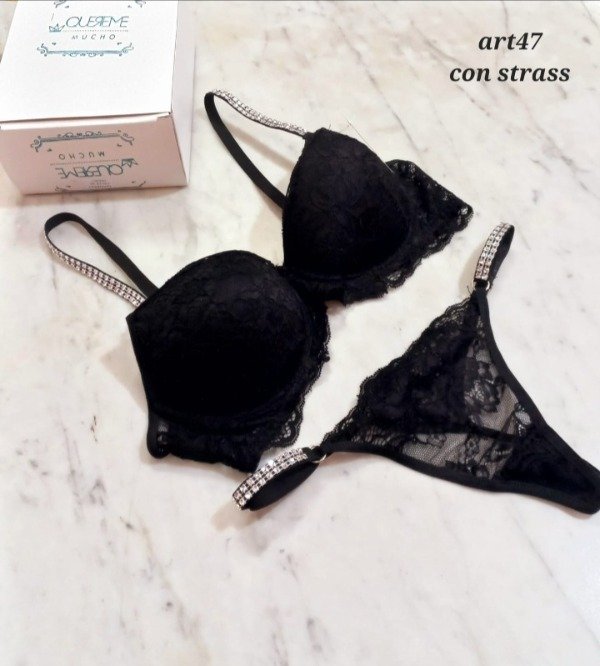 Conjunto soft con puntilla y detalle en falso strass . Con colaless